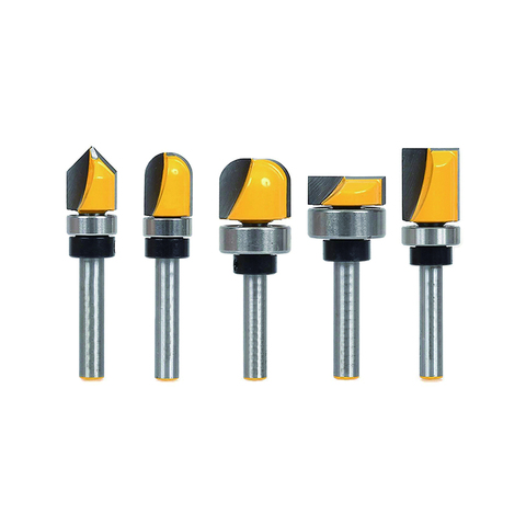 5 stks 1/4 Inch Shank Tungsten Carbide Flush Trim Hout Router Bit Set met Lager voor Houtbewerking