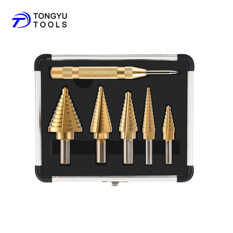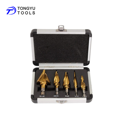 5 cái Inch Hex Shank Xoắn Ốc Sáo Titanium HSS Bước Drill Bit Set cho Nhiều Lỗ Kim Loại Cutter trong Nhôm trường hợp