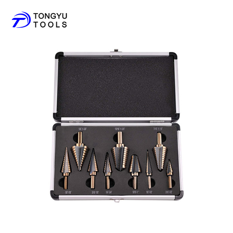 9Pcs Inch Tri-Phẳng Shank Straight Flute Vàng Màu Đen HSS Bước Drill Bit Set Cho Nhiều Lỗ Ống Tấm Khoan
