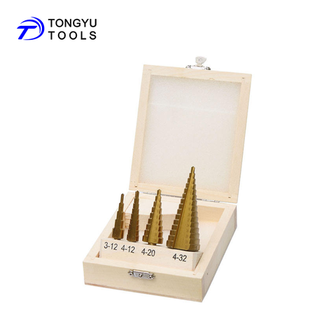 4Pcs Ba Căn Hộ Shank Metric Titanium HSS Bước Drill Bit Set Trong Trường Hợp